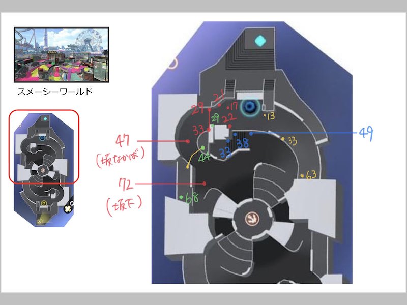 スプラトゥーン2のガチホコルールにおける「カウント」の検証まとめです。それぞれ重要箇所のカウントを記載していますので、リードしたいときや防衛時などにお役立てください。